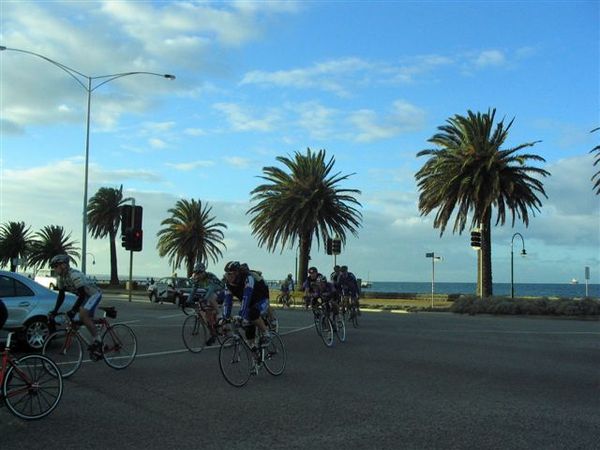 從一下船沿著港邊的路上走就發現墨爾本的單車風氣實在很盛,應該說是整個運動風氣就是很盛。今個兒是禮拜六早晨,整個Port Phillip灣旁來來回回的勁裝打扮的自行車騎士,一開始還以為是什麼自行車比賽,因為實在是多得太誇張了,市民們都很愛騎車、運動。