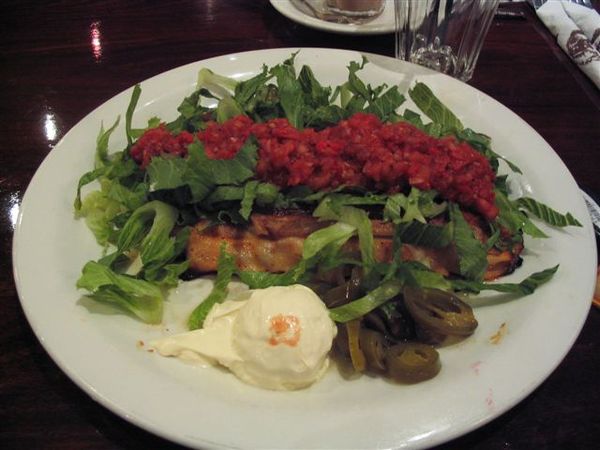 這兒的pancake有甜點、也有做成鹹的主菜,Harvey就點了個Pancake的非力牛排,我倒沒點Pancake,而是叫了一道墨西哥風味包辣牛肉醬的Crepe(可麗餅)