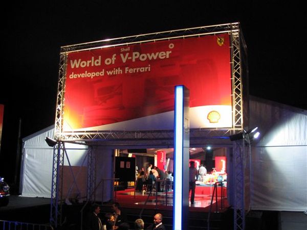 這個法拉利搭的篷子裡面不曉得賣得是什麼膏藥,一些西裝筆挺的人站在外頭,還有門禁管制,我想大概是有台法拉利的人才能進去吧...